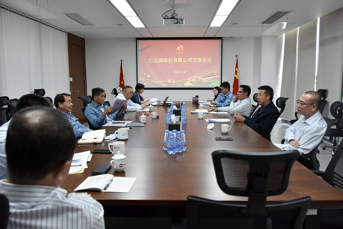 11月16日,巨正源公司召開黨委會,深入學(xué)習(xí)貫徹十九屆六中全會精神。公司黨委書記、董事長石新琦主持會議。