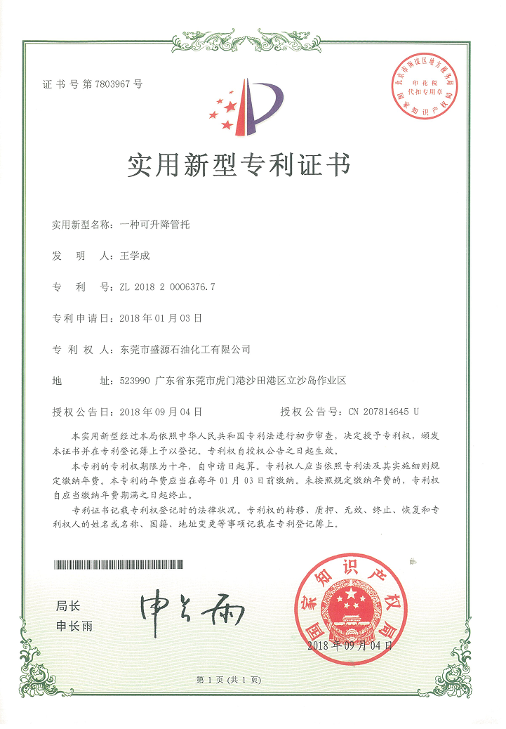 實用新型耐腐蝕儲罐專利證書Click for larger image