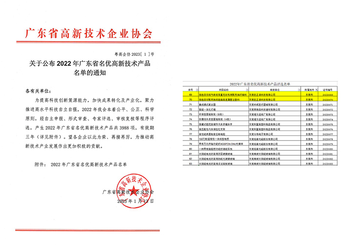 近日,廣東省高新技術企業協會公布了2022年廣東省名優高新技術產品名單。東莞巨正源科技有限公司的“綠色非鄰低氣味低克重無紡布用聚丙烯纖維料”、“綠色非鄰聚丙烯低翹曲高透薄壁注塑料”兩項產品榮獲“廣東省名優高新技術產品”稱號。