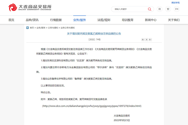 9月23日,大連商品交易所發(fā)布公告,增加?xùn)|莞巨正源科技有限公司的“巨正源”牌為聚丙烯免檢注冊(cè)品牌。