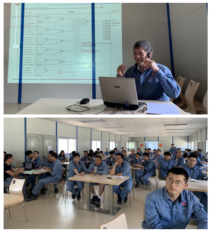 培訓由工程部副總工程師王成林主講,從準備工作,邏輯圖目錄編排(按輸出和功能)和PC站軟按鈕清單,氣流輸送的通常操作步驟,料倉的選擇、確認及切換,氣動換向閥控制,輸送風機的選擇、確認、控制及風機出口氣動蝶閥控制等,并以風送A1線為例,做了具體邏輯的解讀。參訓人員紛紛表示,受益良多,此次課程的邏輯學習也適用其他系統,王成林副總工的工匠精神同樣值得我們學習。