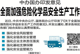 近日,中共中央辦公廳、國務(wù)院辦公廳印發(fā)了《關(guān)于全面加強危險化學(xué)品安全生產(chǎn)工作的意見》,并發(fā)出通知,要求各地區(qū)各部門結(jié)合實際認(rèn)真貫徹落實。