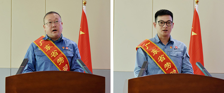 會議宣讀了對榮獲“廣東省勞動模范”的許多琦、張東波同志的表彰決定,對他們辛勤付出和工作成效予以肯定。公司領(lǐng)導(dǎo)為許多琦、張東波同志頒發(fā)獎金,并為許多琦、張東波“勞模和工匠人才創(chuàng)新工作室”揭牌。