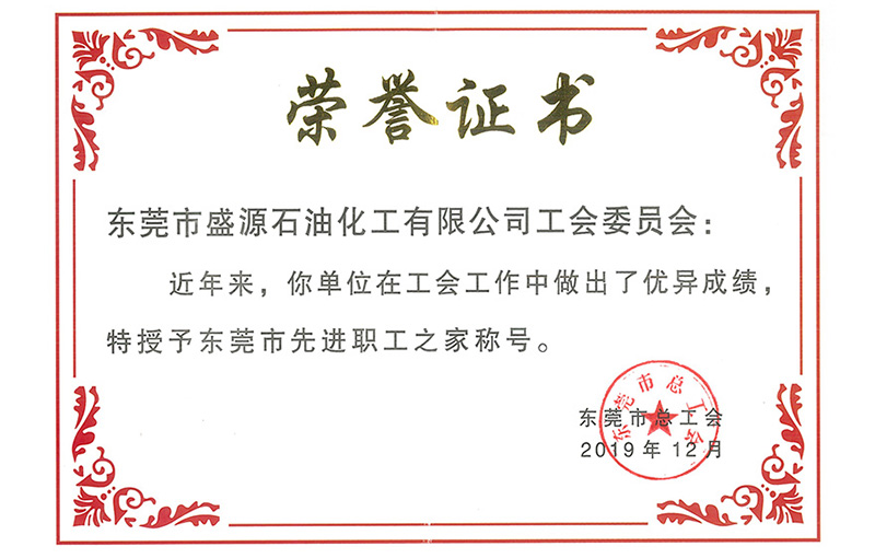 盛源石化工會喜獲“東莞市先進職工之家”榮譽稱號
